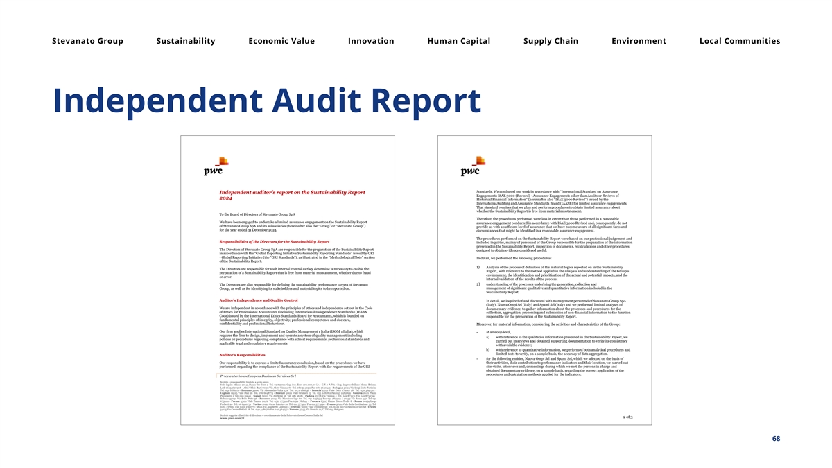 Stevanato Group Sustainability Economic Value Innovation Human Capital Supply Chain Environment Local Communities Independent Audit Report 68